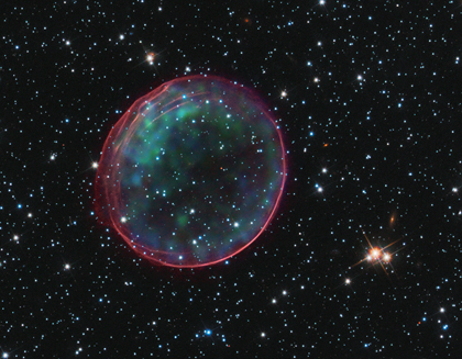 Pretty, pretty bubble in space. :-) It's a supernova remnant.
